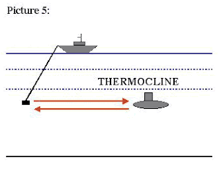 People sometimes think that if a submarine dives deep enough it can take advantage of the major change in water temperature (thermocline) by sitting safely below the layer. This would be correct and comforting to the submarine commander if the sensor threat were only on the surface.