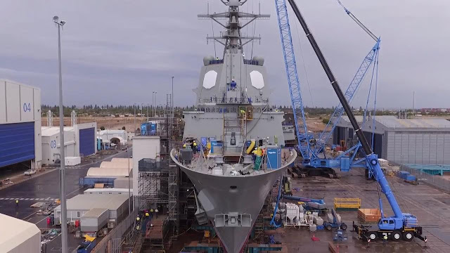 An Air Warfare Destroyer being built at ASC, Osborne, Adelaide. From the road I saw Nuships Brisbane and Sydney under construction. Ship/submarine building is Adelaide's (only promising?) manufacturing growth industry. Phote courtesy Sydney's Daily Telegraph.